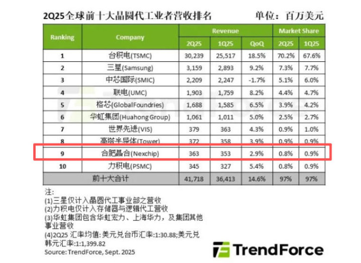 但这家年仅10来岁的芯片代工厂,硬是跑出了合肥速度,10年时间,成为了中国第三大芯片代工厂,也成为了全球第9大芯片代工厂。